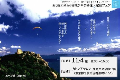 タキタ産業の仕事ではないのですが、「ふるさと暮らしセミナー」来て!見て!晴れの国おかやま移住・定住フェアというイベントが東京有楽町の東京交通会館12階で開かれます。