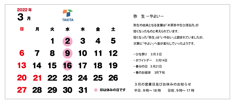 桃の花から桜の花に変ってくる季節…少しずつ暖かさも増してくる季節がすぐそこまで来ています。