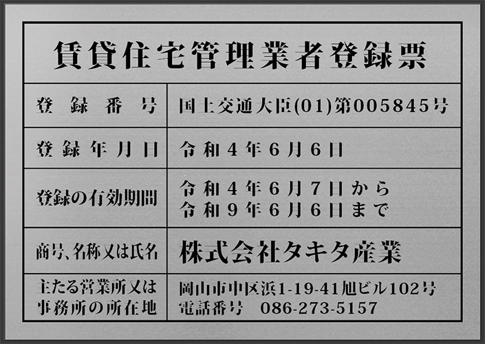 賃貸住宅管理業法というものが昨年施行されちょうど1年経過してこの登録票を事務所にやって掲載することとなりました。