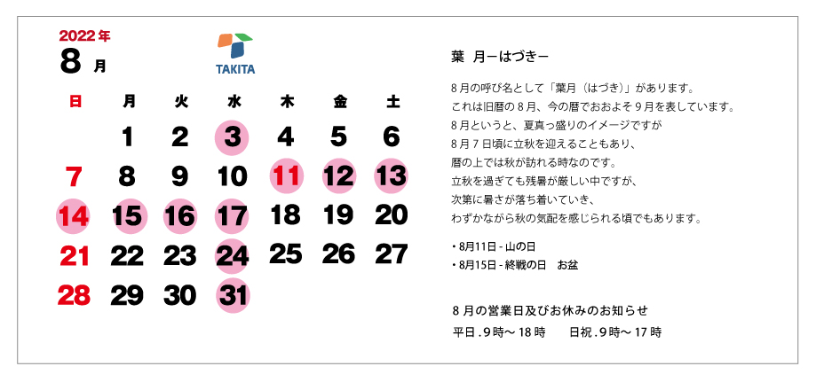 弊社では少し長めの夏休み…8月11日~17日までを予定しています。