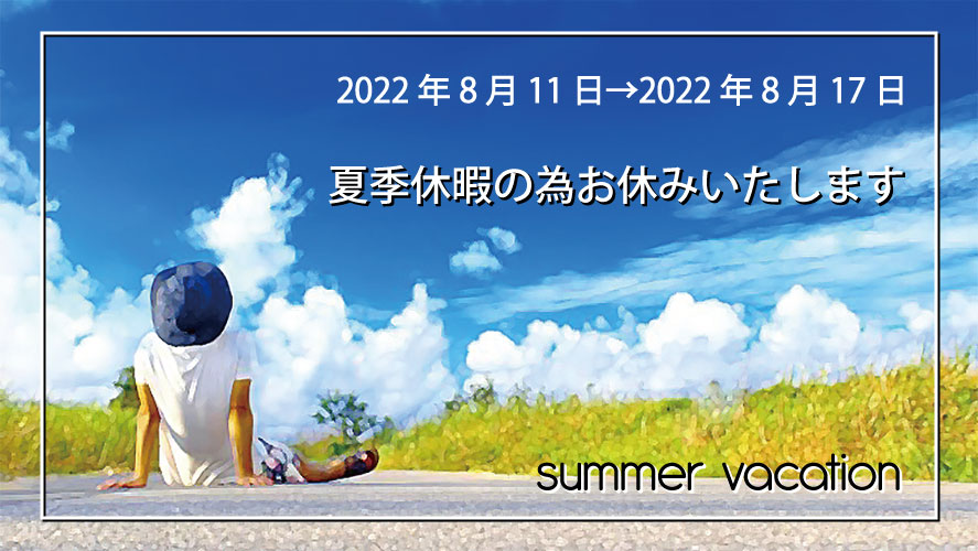 さて、来週末からはお盆の時期に入りますので弊社も11日(木)から17日(水)まで少し長めのお休みをいただきます。