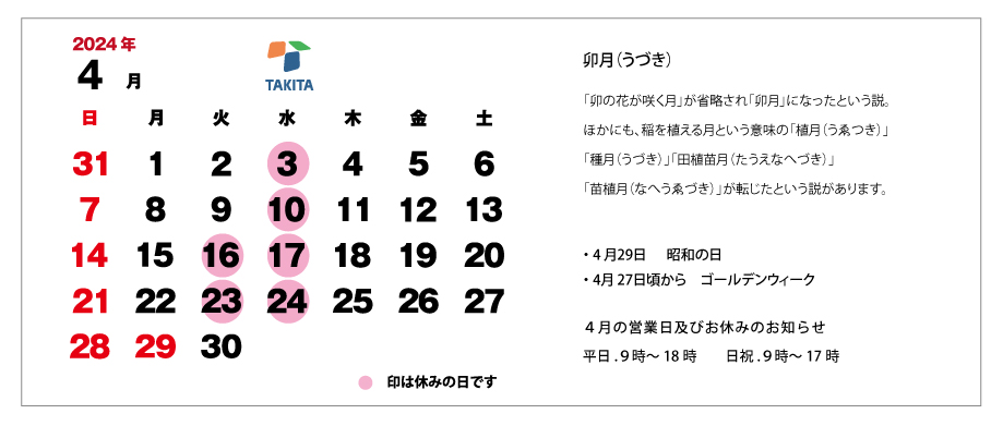 4月の弊社の予定も掲載したのでご来店やお問い合わせの参考にしてください。