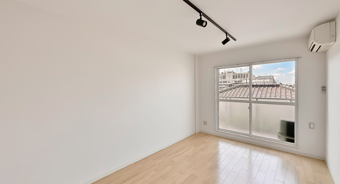 その物件は家主が変更になり方針も変わったので、同じタイプのフェスタ浜の305号室にダクトレール照明を設置しました。