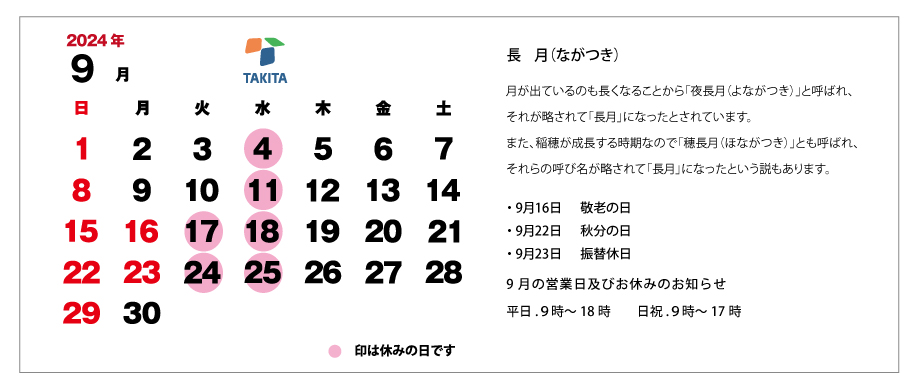 9月の予定表が出来ました。
