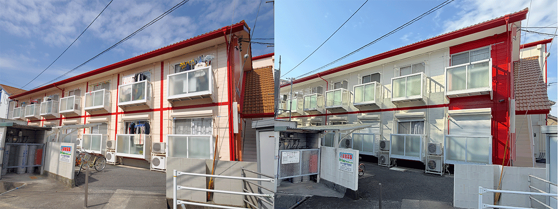 2025年11月西川原駅前のコーポブランシェA棟の外観リフレッシュが終わりました。