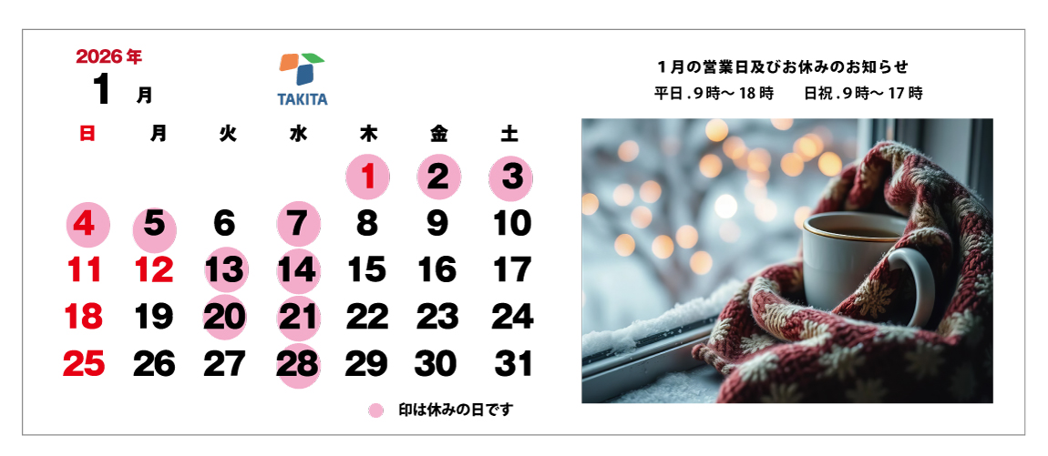年明けの予定は5日までお休みを頂いて6日は営業ですが7日が水曜日で休みという少々変則的になります。