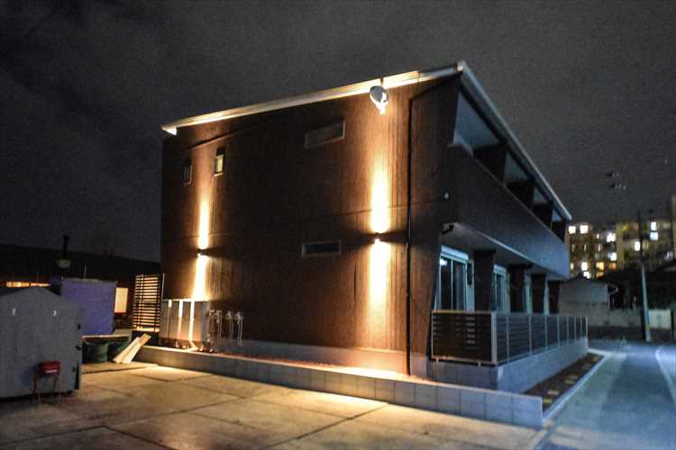 玄関ドアもカードタイプにして外観周りには外灯の設置数も多くなっています。 確かに家賃はリーズナブルとは言えませんが、その分広さと設備で納得していただく建物です。